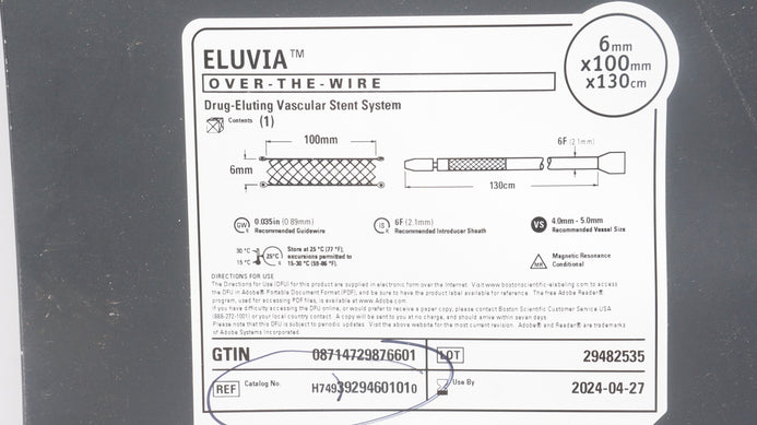 - Boston Scientific H74939294601010 Eluvia Vascular Stnt System 6 x 100mmx130cm(x)