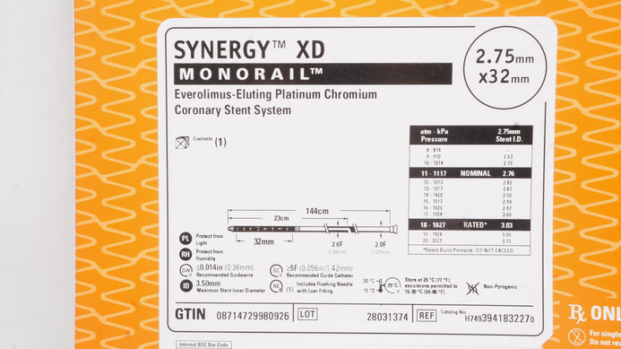 Boston Scientific H7493941832270 Synergy XD Coronary Stent System 2.75 x 32mm(x) Boston Scientific H7493941832270 Synergy XD Coronary Stent System 2.75 x 32mm(x) Boston Scientific H7493941832270 Synergy XD Coronary Stent System 2.75 x 32mm(x)