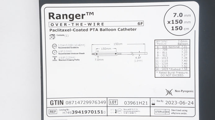 - Boston Scientific H74939419701510 Ranger Balloon Cath. 7.0 x 150mm x 150cm (x)