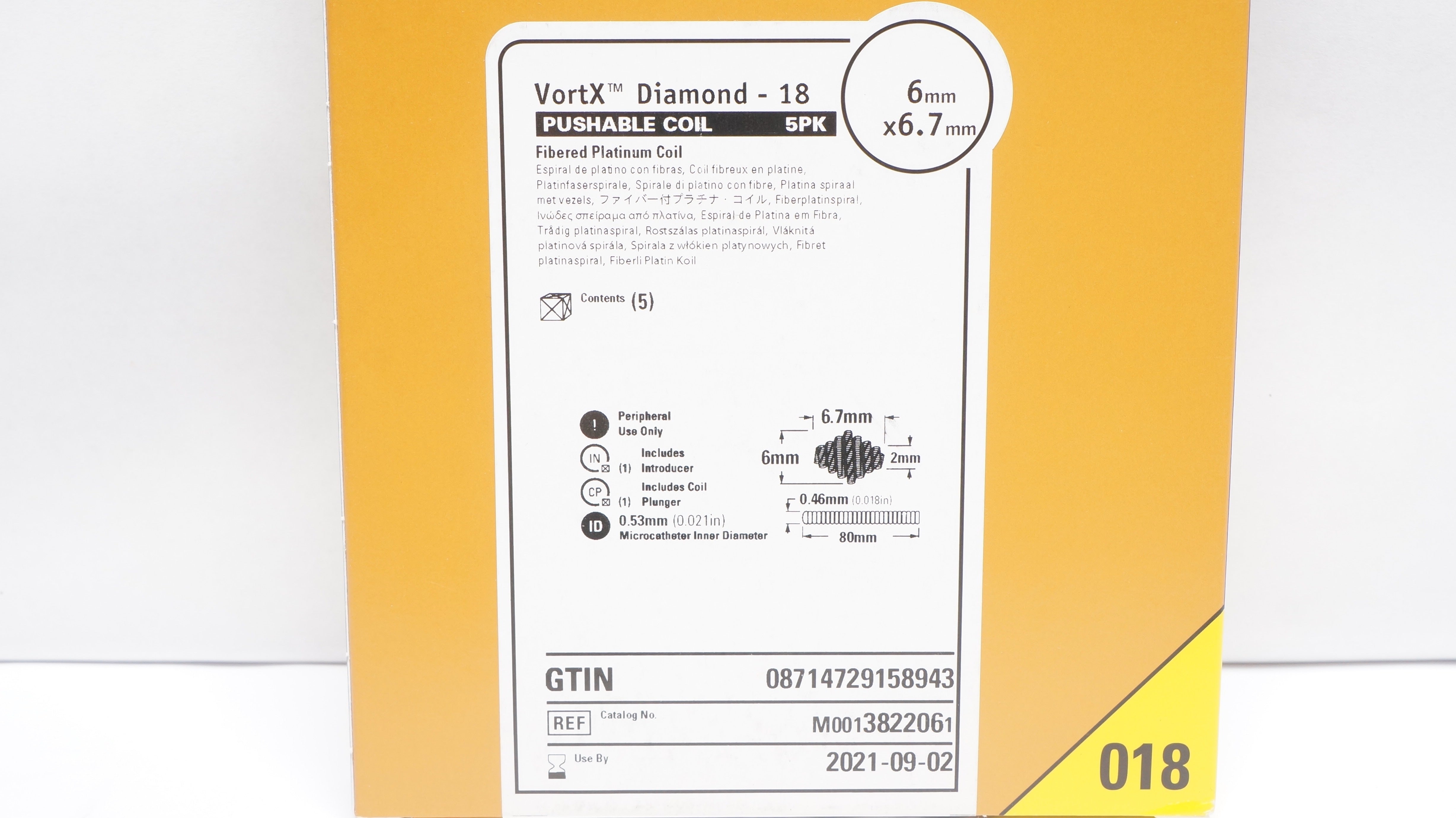 - Boston Scientific M0013822061 VortX Fibered Platinum Coil 6 x 6.7mm(x)-Box of 5