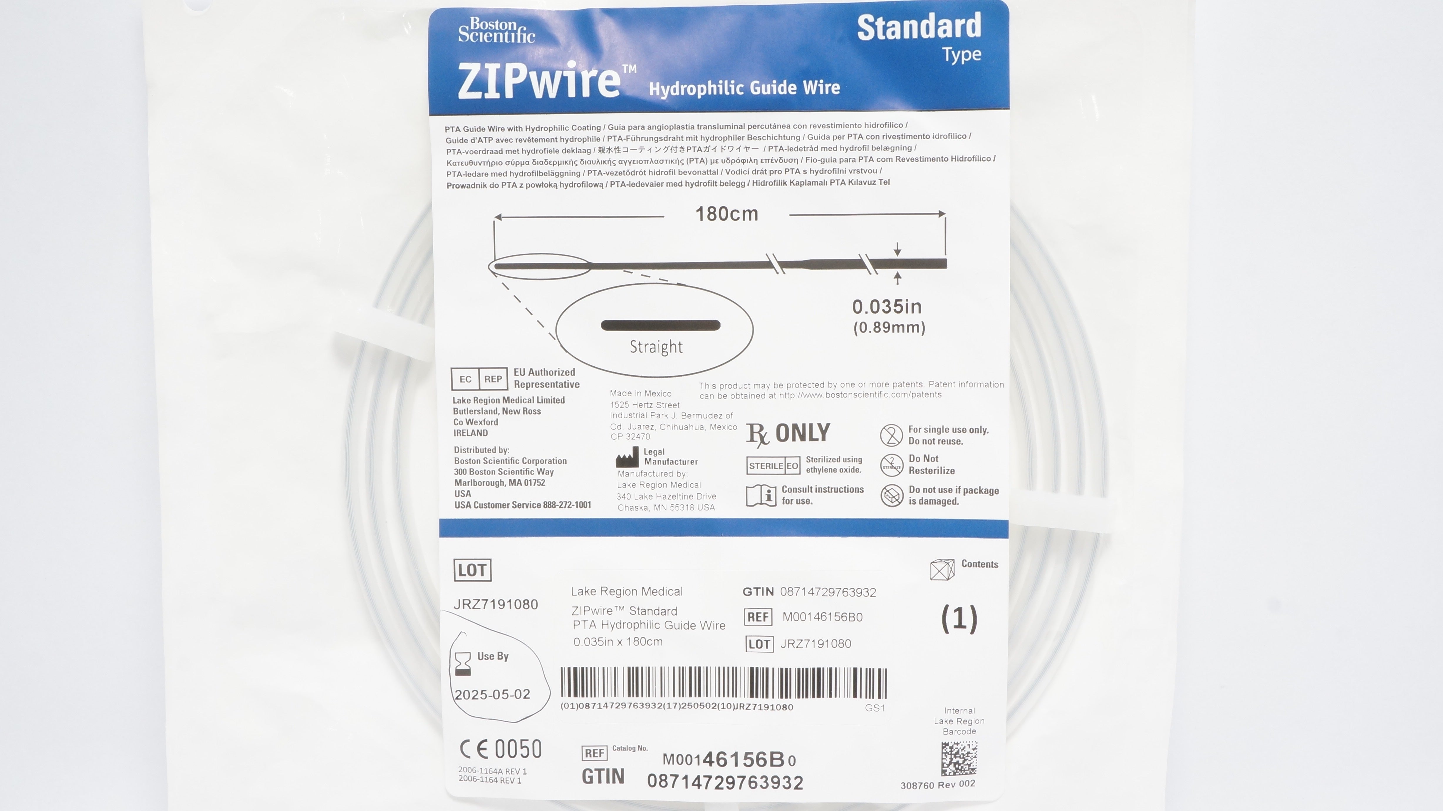 - Boston Scientific M00146156B0 ZipWire Hydrophilic Guide Wire 180cm (x)