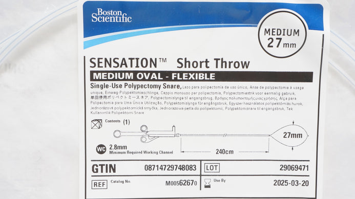 - Boston Scientific M00562670 Sensation Short Throw Polypectomy Snare 27mm (x)
