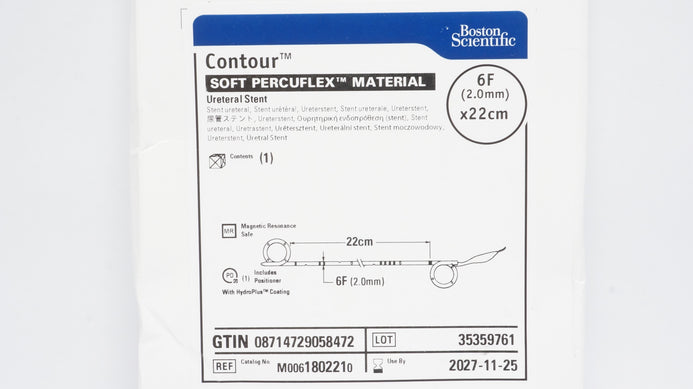 - Boston Scientific M0061802210 Contour Soft Percuflex Ureteral Stnt 6F x 22cm