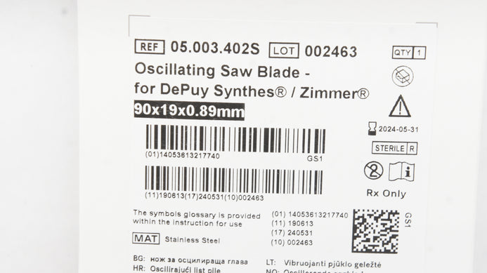 - Brasseler 05.003.402S DePuy Synthes Oscillating Saw Blade 90 x 19 x 0.89mm
