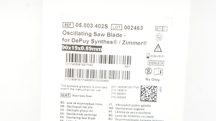 Brasseler 05.003.402S DePuy Synthes Oscillating Saw Blade 90 x 19 x 0.89mm