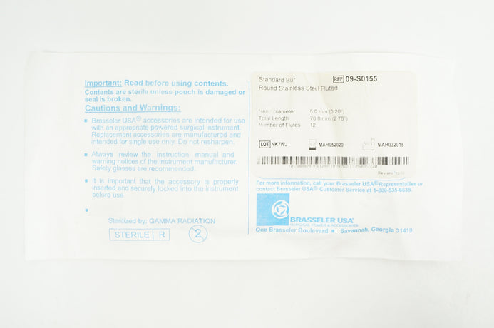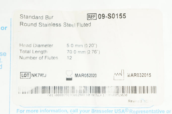 - Brasseler 09-S0155 Standard Bur Round Stainless Steel Fluted 0.20inx2.76in (x)