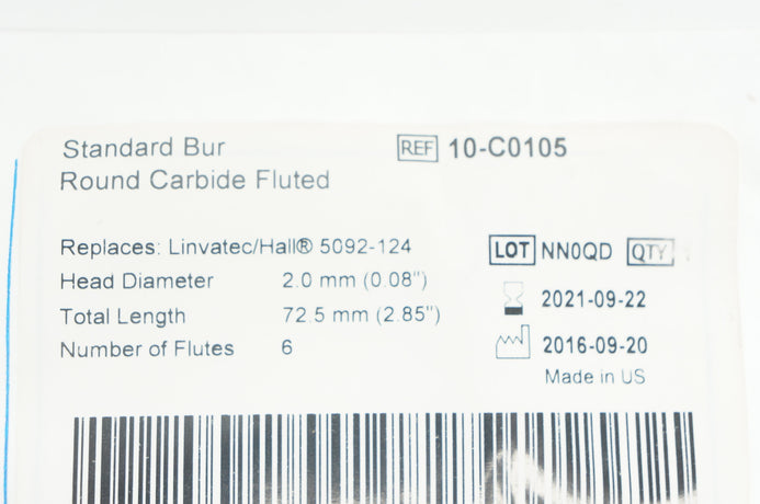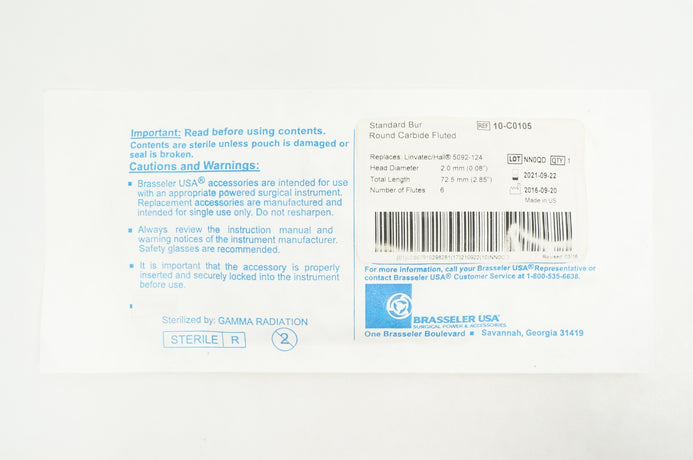 - Brasseler 10-C0105 Standard Bur Round Carbide Fluted 0.08inch x 2.85inch (x)