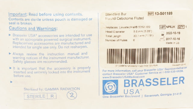 - Brasseler 13-S01189 Standard Bur Round Cebotome Fluted 0.20 inch x 1.19inch (x)