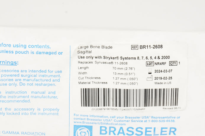 - Brasseler BR11-2608 Large Bone Blade Sagittal 2.76 x 0.51 inch