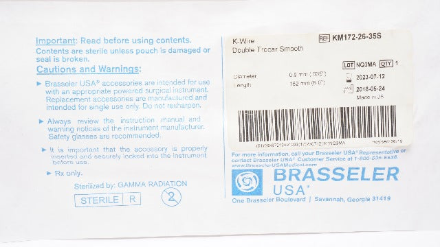 - Brasseler KM172-26-35S K-Wire Double Trocar Smooth 0.035inch x 6.0inch
