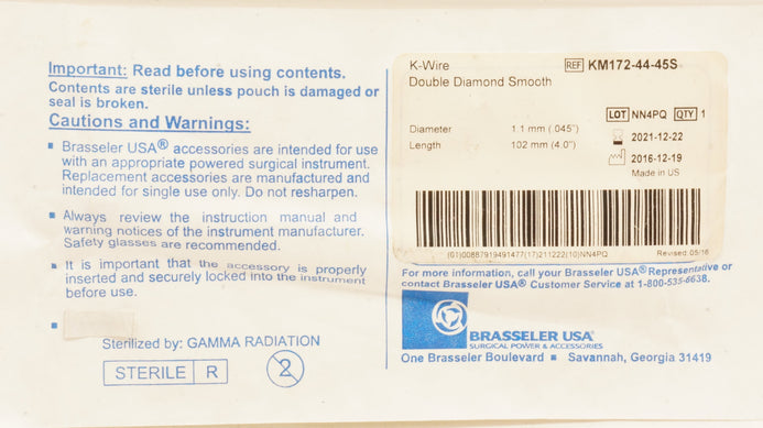 - Brasseler KM172-44-45S K-Wire Double Diamond Smooth .045inch x 4.0inch