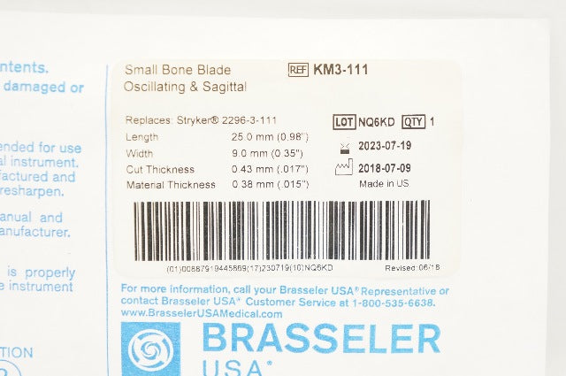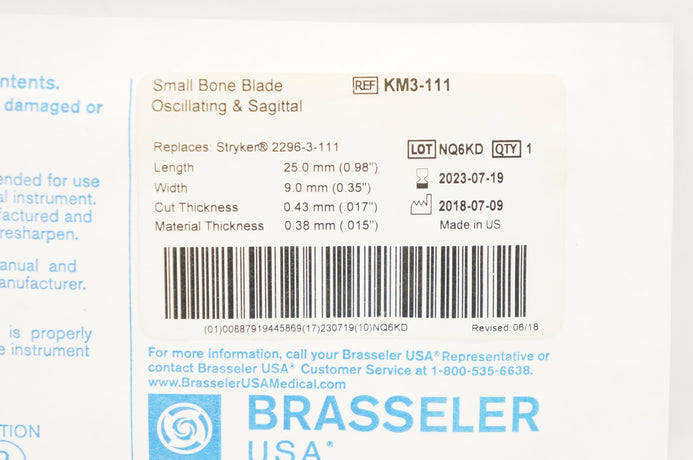 - Brasseler KM3-111 Small Bone Blade 0.98inch x 0.35inch x .017 inch (x)