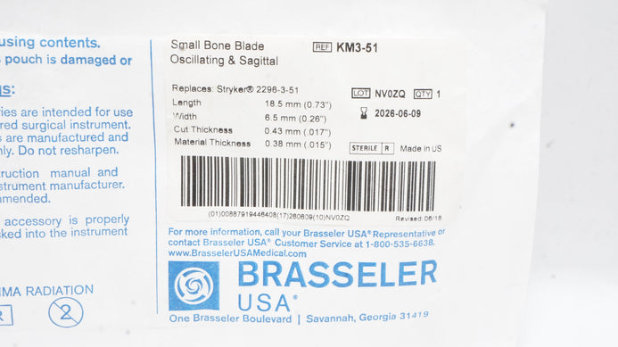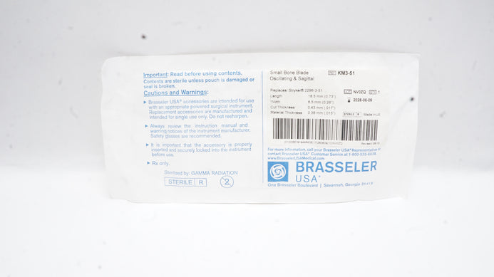 - Brasseler KM3-51 Small Bone Blade Oscillating & Sagittal 0.73inch x 0.26inch