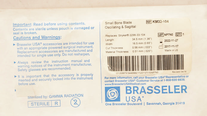 - Brasseler KM33-104 Small Bone Blade Oscillating & Saggital 1.36inch (x)