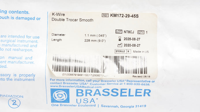 - Brasseler USA KM172-29-45S K-Wire Duble Trocar Smooth .045inch x 9.0inch (x)