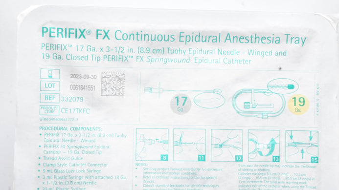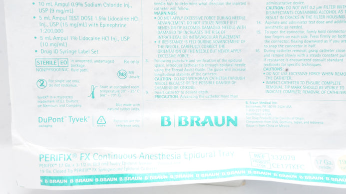 - Braun 332079 Perifix FX Continuous Epidural Anesthesia Tray 17Ga x 3-1/2inch (x)