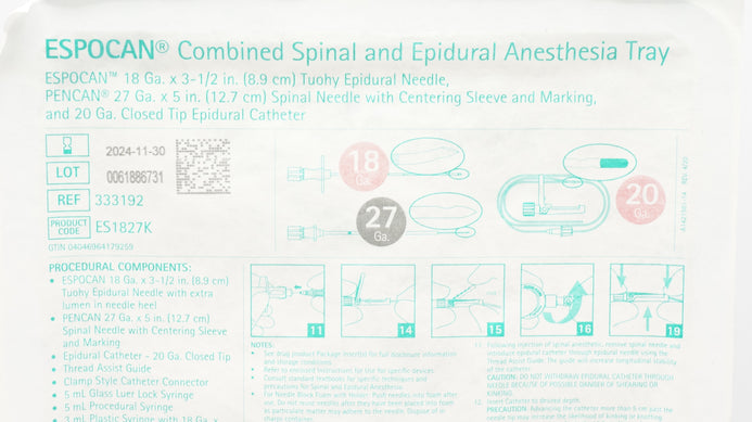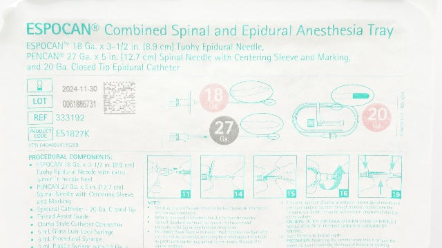 - Braun 333192 Espocan Combined Spinal & Epidural Anesthesia Tray