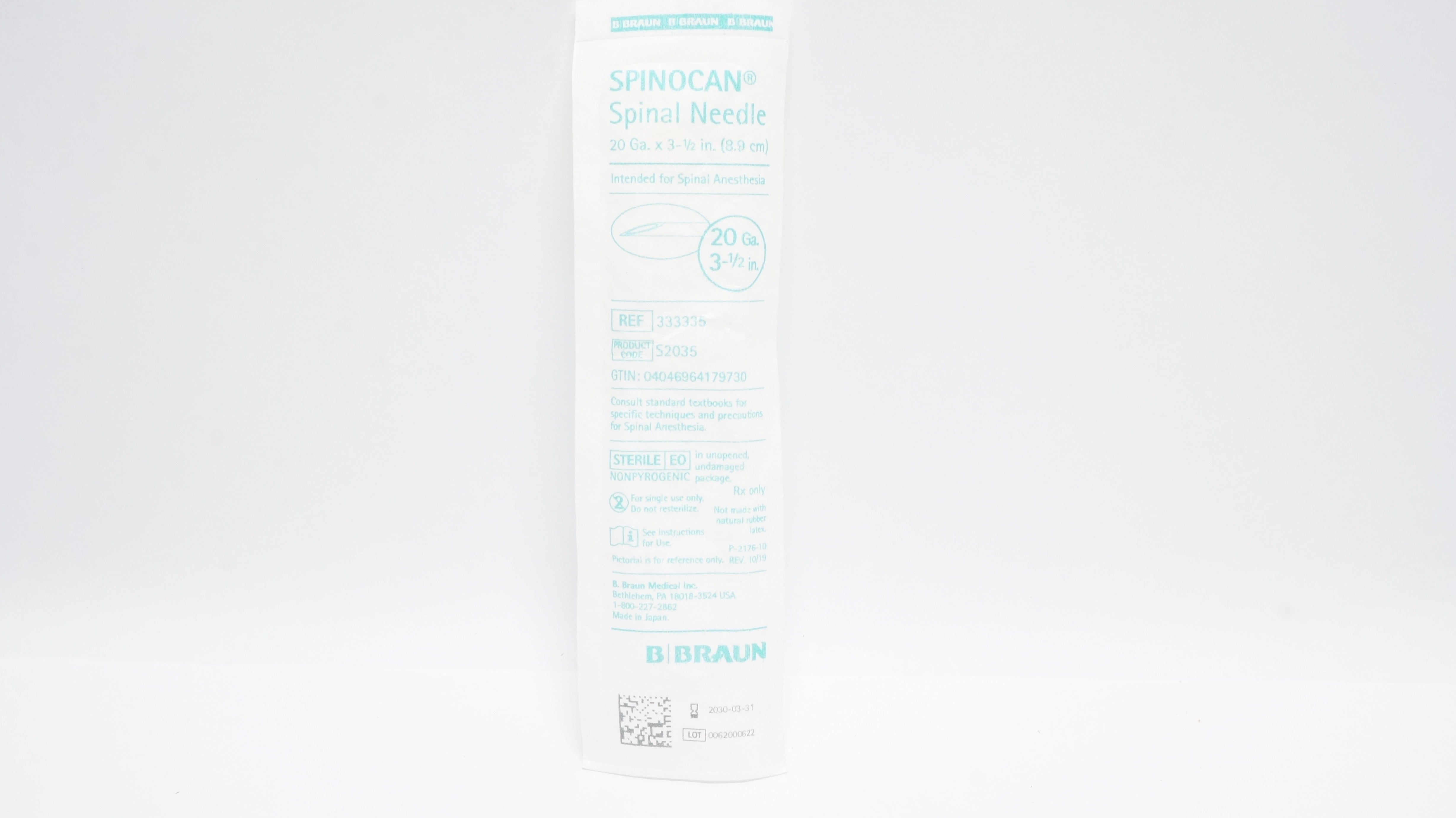 - Braun 333335 Spinocan Spinal Ndle 20Ga x 3-1/2inch