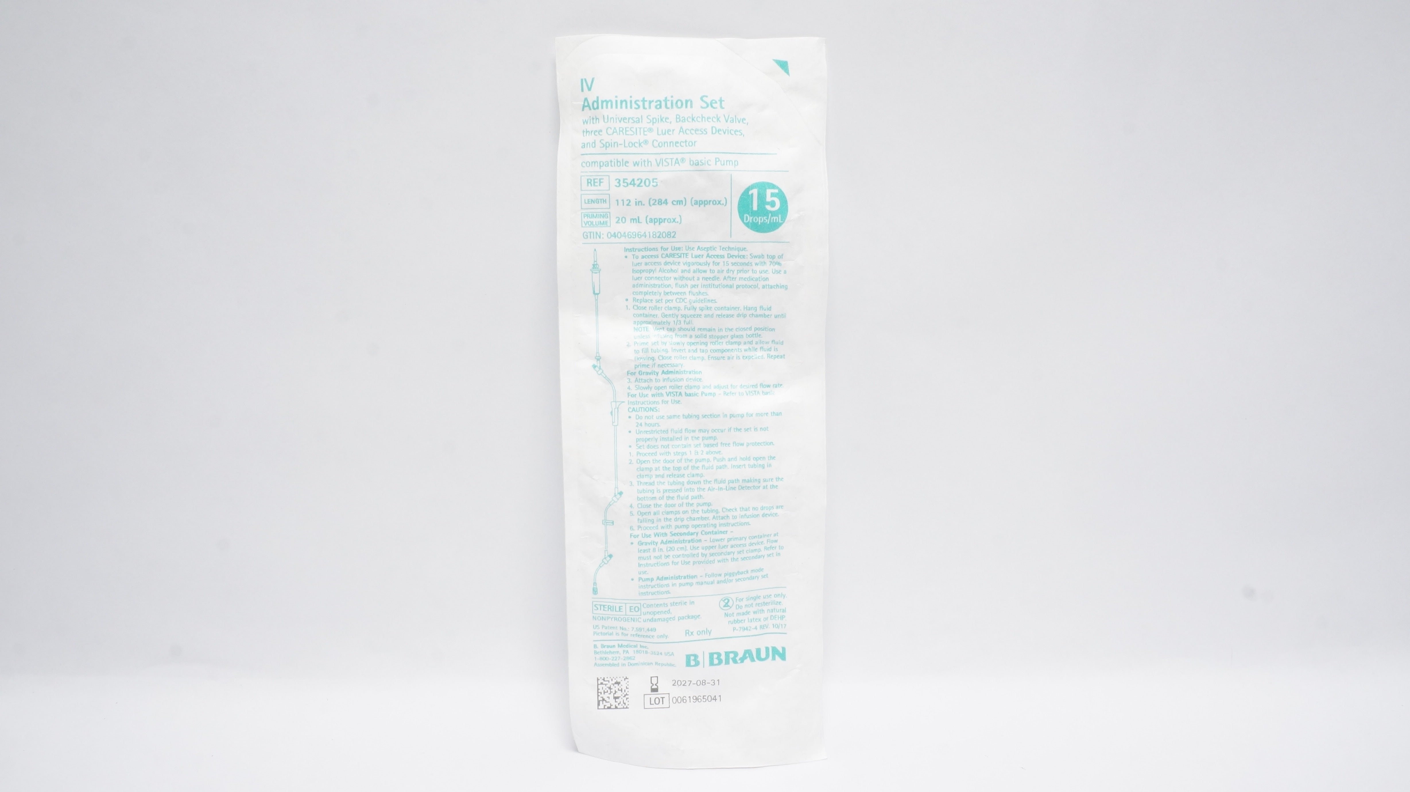 - Braun 354205 IV Administration Set 112inch x 20mL Approx. 15Drops/mL