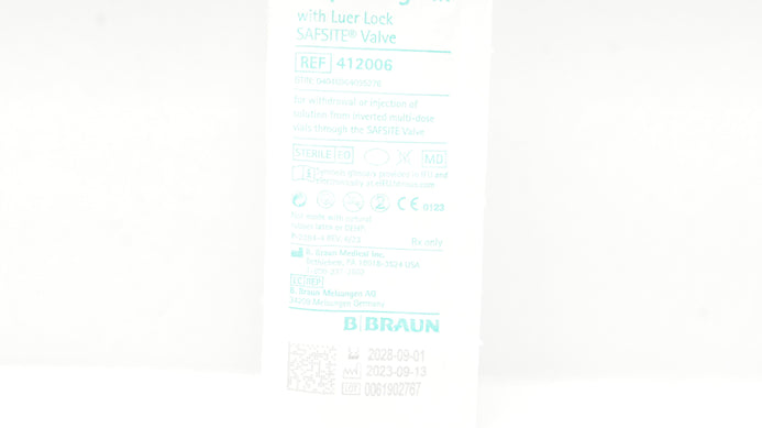 - Braun 412006 Vented Dispensing Pin W/ Luer Lock Safsite Valve