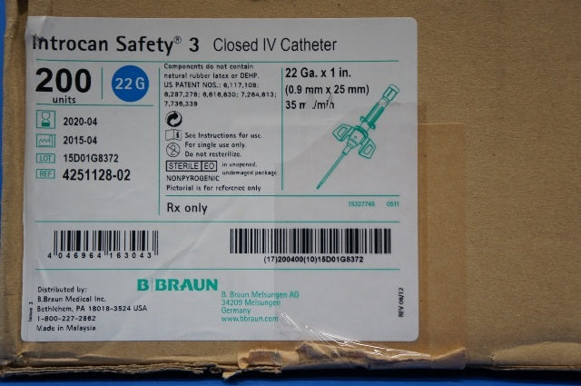 - Braun 4251128-02 Closed IV Cath Introcar Safety 3 22Ga x 1inch 35ml ~ Box of 200