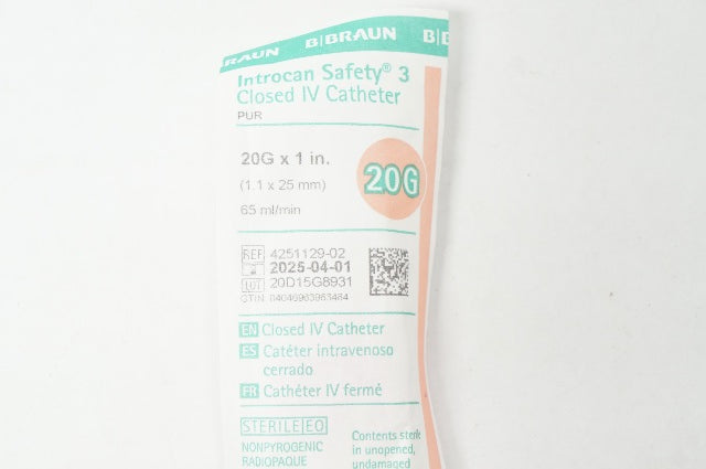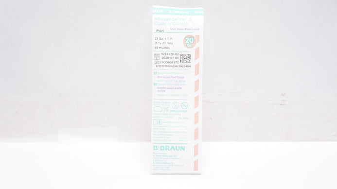 - Braun 4251129-02 Introcan Safety 3 Closed IV Cath. PUR 20G x 1 inch x 65ml/min