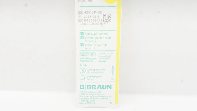 - Braun 4251611-02 Introcan Safety IV Cath. Notched Ndle 24G x 0.55in 26mL/min(x)
