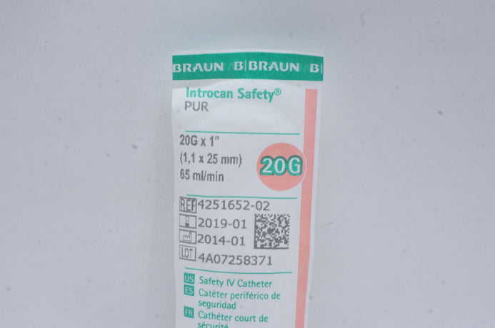 - Braun 4251652-02 Introcan Safety IV Cath. 20G x 1inch, 65ml/min (x)