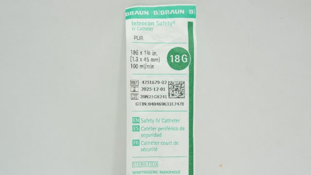 - Braun 4251679-02 Introcan Safety IV Cath. 18G x 1-3/4inch 100ml/min