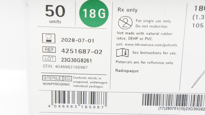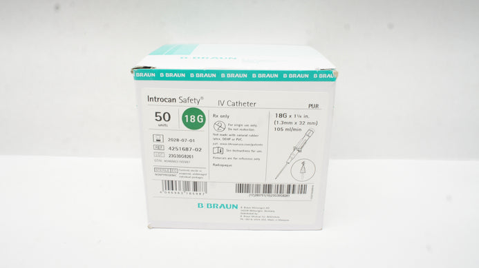 - Braun 4251687-02 Introcan Safety Safety IV Cath. PUR 18Gx1-1/4inch - Box of 50