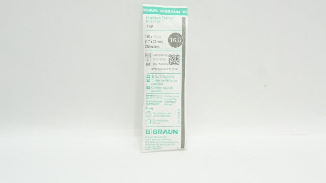 - Braun 4251709-02 Introcan Safety Safety IV Cath. PUR 16G x 1-1/4inch, 215ml/min