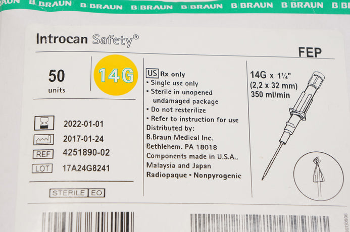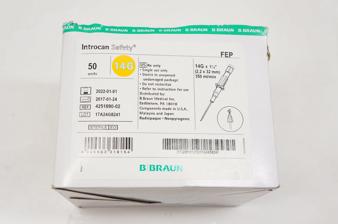 - Braun 4251890-02 Introcan Safety IV Cath. 14G x 1-1/4inch - Box of 50