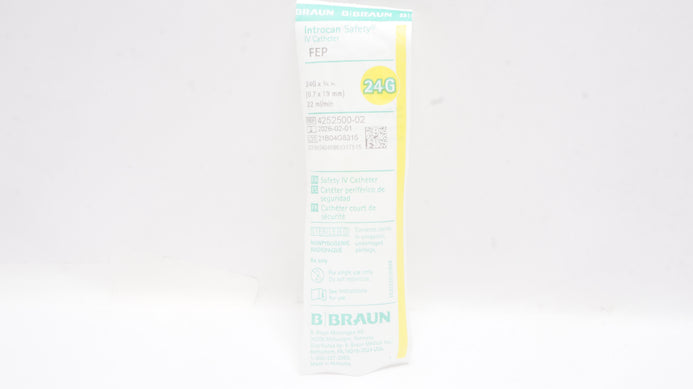 - Braun 4252500-02 Introcan Safety IV Cath. 24G x 3/4 inch x 22 mL/min