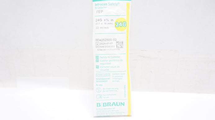 - Braun 4252500-02 Introcan Safety IV Cath. 24G x 3/4 inch x 22 mL/min (x)