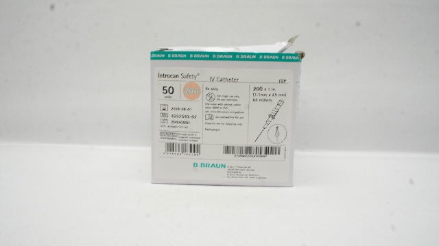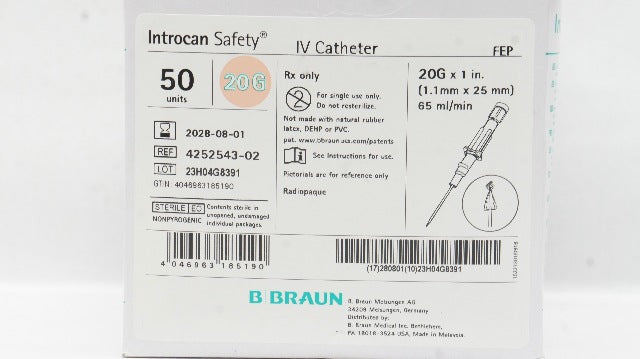 - Braun 4252543-02 Introcan Safety IV Cath. 20G x 1inch 65ml/min - Box of 46