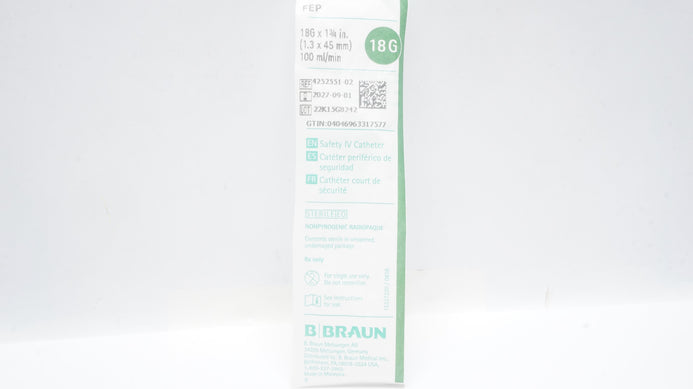 - Braun 4252551-02 Introcan Safety IV Cath. 18G x 1 3/4inch 100ml/min