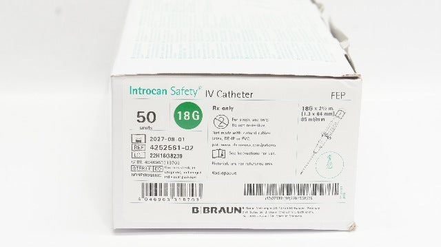 - Braun 4252561-02 Introcan Safety IV Cath. 18Gx 2.5inch x 85ml/min - Box of 50