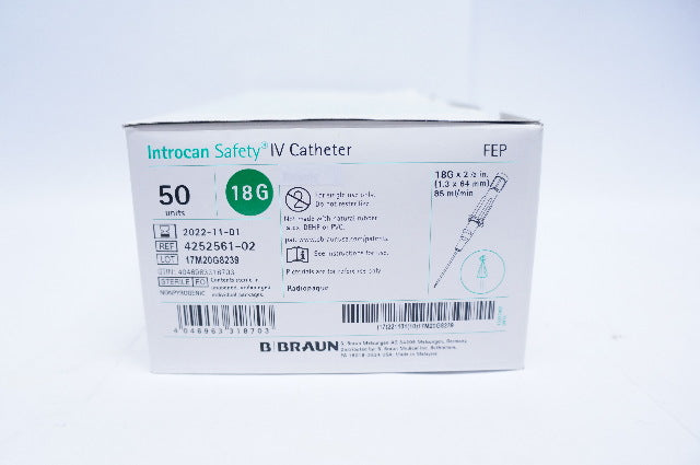 - Braun 4252561-02 Introcan Safety IV Catherter 18Gx 2.5inch x 85ml/min -Box of 50