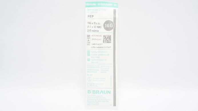 - Braun 4252586-02 Introcan Safety IV Cath. 16G x 1-1/4inch 215ml/min
