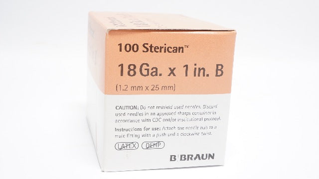 - Braun 4665118-02 Sterican Hypodermic Needle 18Ga. x 1in. - Box of 100