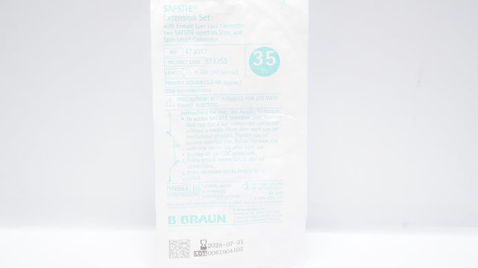 - Braun 473017 Safsite Extension Set W/Female Luer Lock Connector 35In x 5.2mL