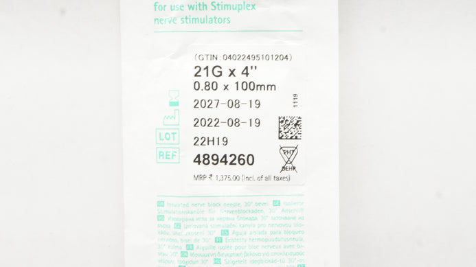 - Braun 4894260 Stimuplex A Insulated Ndle 21G x 4 inch