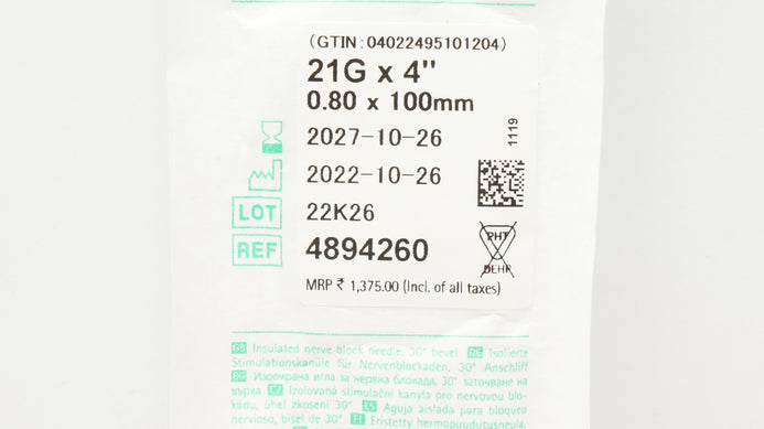 - Braun 4894260 Stimuplex A Insulated Ndle 21G x 4inch