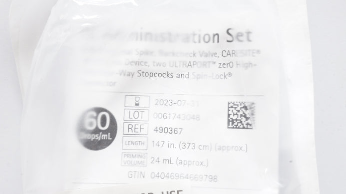 - Braun 490367 IV Intravenous Administration Set 60 Drops/mL 147inch x 24mL (x)