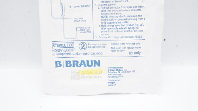 1 - 122cm Transfr Set with Vented Piercing Device Two-Way Check Valve and 25cm Extension Tube