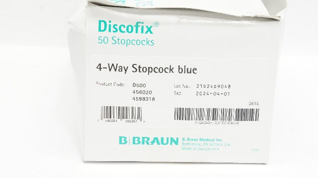 - Braun D500 Discofix 4-Way Stopcock Blue - Box of 35