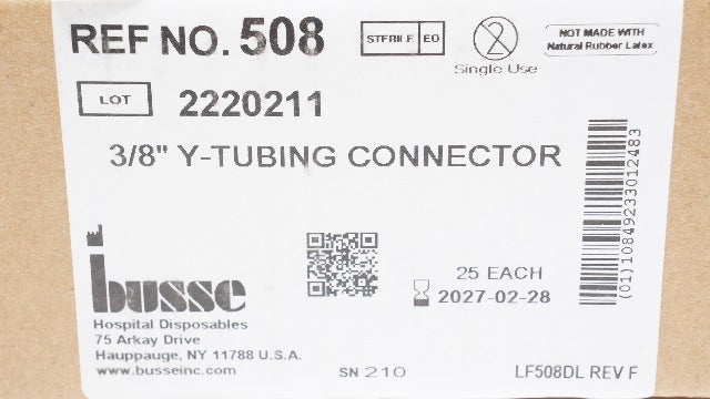 - Busse 508 Y Tubing Connector 3/8inch - Box of 25