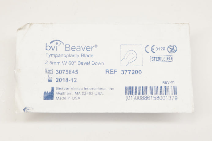 - BVI Beaver 377200 Tympanoplasty Blade 2.5mm W 60deg Bevel Down (x)