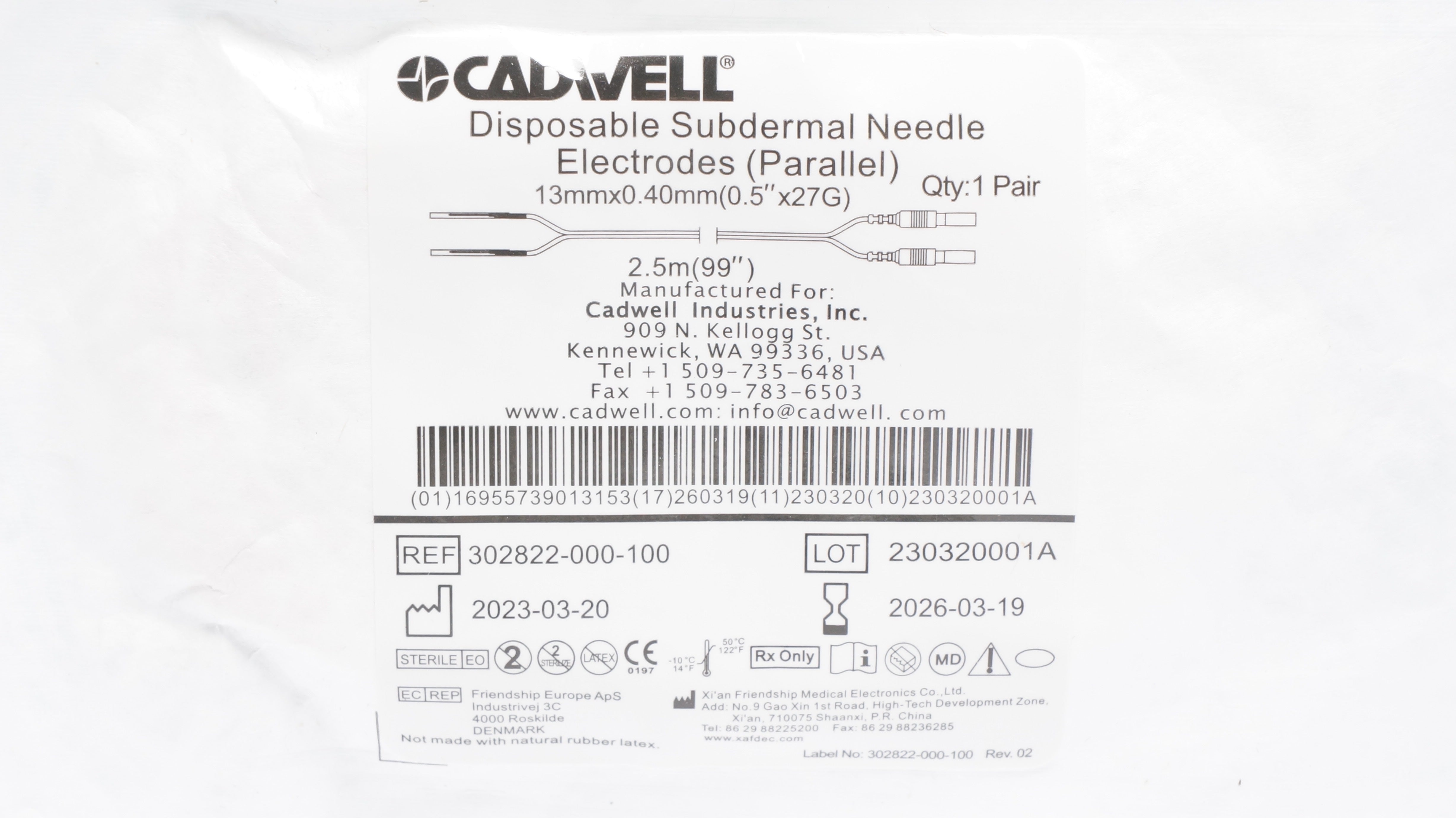 - Cadwell 302822-000-100 Disposable Subdermal Ndle Electrodes 27G x 0.5 x 99inch