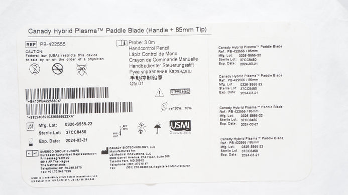- Canady Biotechnology PB-422555 Hybrid Plasma Paddle Blade (Handle + 85mm Tip)(x)
